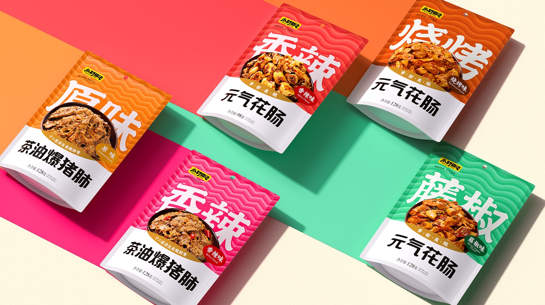 元氣花腸包裝設計、茶油爆豬肺包裝設計、休閑食品產品包裝設計、肉質食品包裝設計