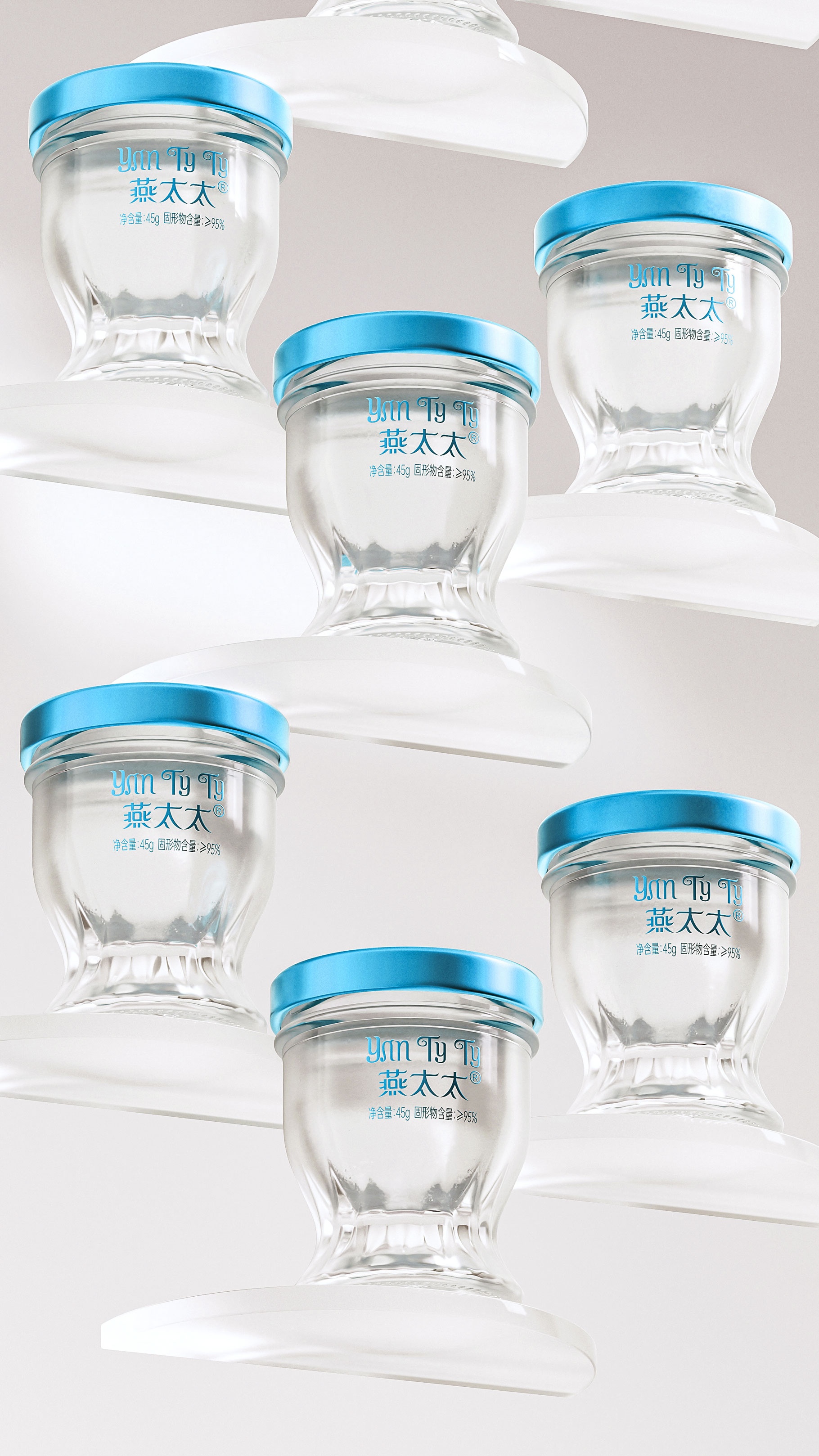 功能細(xì)節(jié)上,瓶身采用食品級水晶玻璃與氮氣鎖鮮工藝,確保燕窩品質(zhì);瓶底拋光切面,在光影下折射出琥珀色光澤,暗合傳統(tǒng)滋補文化的貴重屬性。